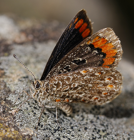 In late summer and autumn, two butterflies unique to the Midlands may be seen. The Natal Rocksitter, Durbania limbata, is found in scattered colonies near suitable sandstone rocks, on which the lichens grow that its caterpillars eat.